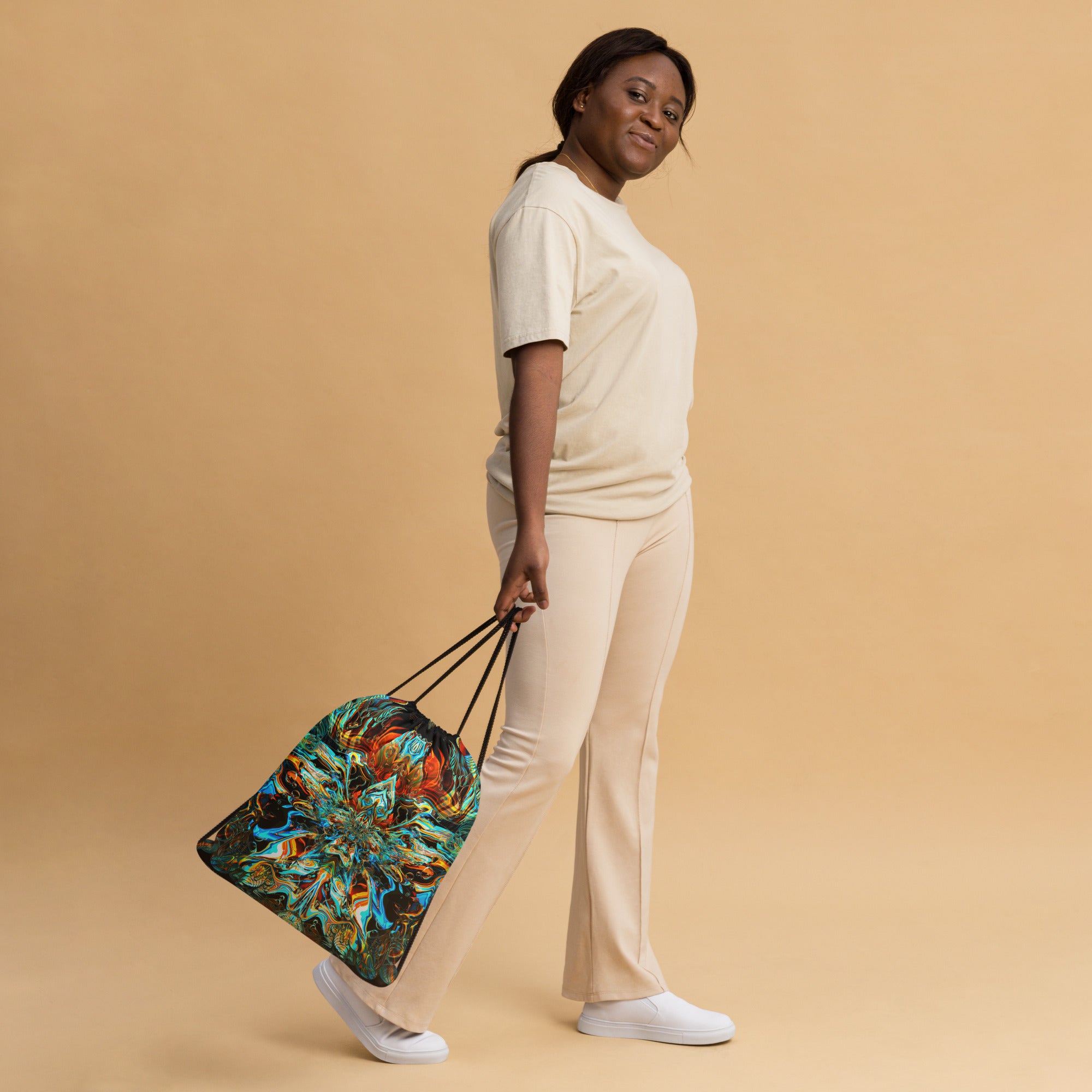 Gym bag, drawstring bag, or backpack? Call it as you like! It's a must-have gym essential that can be worn as a backpack with drawstring closure at the top, and narrow, contrasting shoulder straps. Combine your love for vibrant prints and a sporty style!