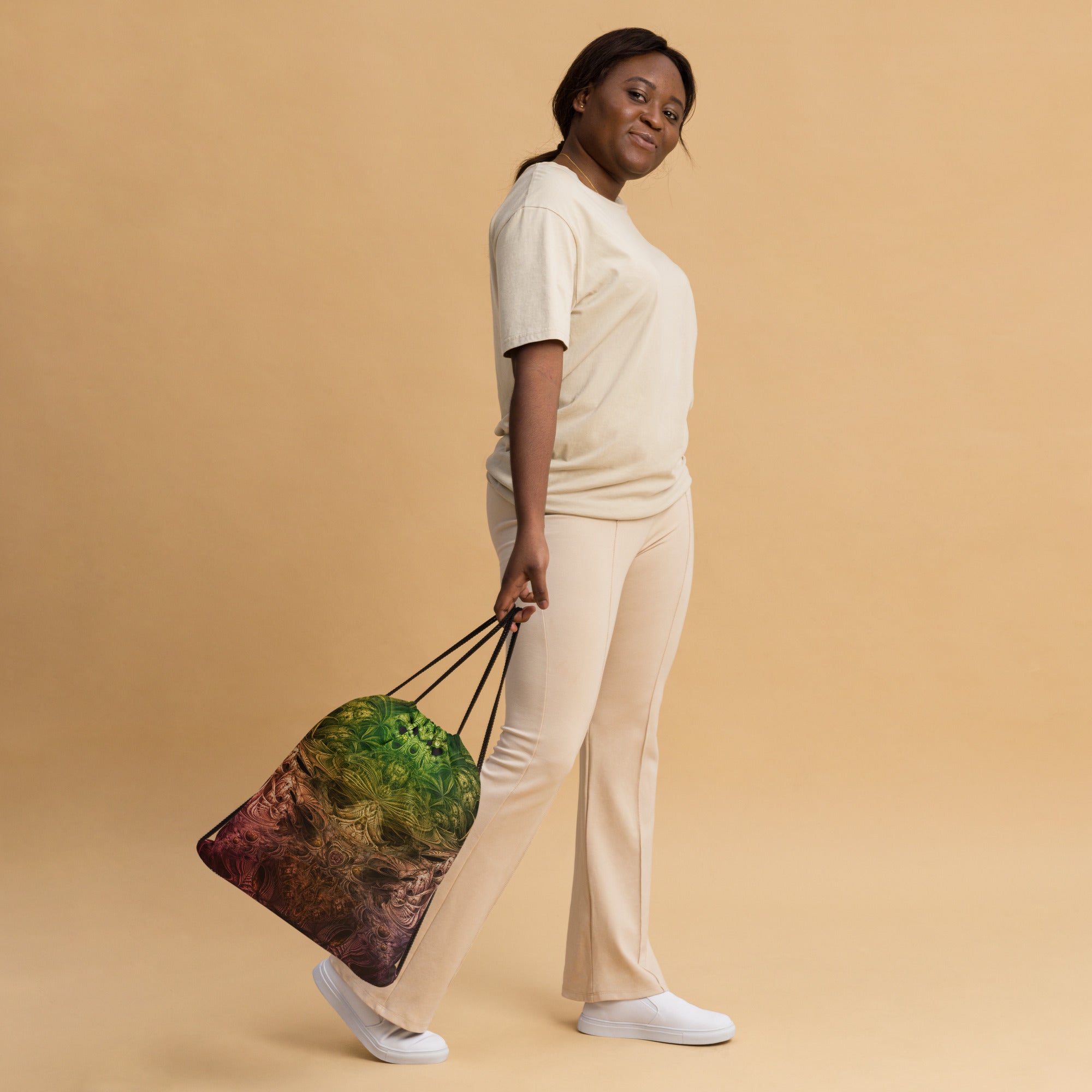 Gym bag, drawstring bag, or backpack? Call it as you like! It's a must-have gym essential that can be worn as a backpack with drawstring closure at the top, and narrow, contrasting shoulder straps. Combine your love for vibrant prints and a sporty style!