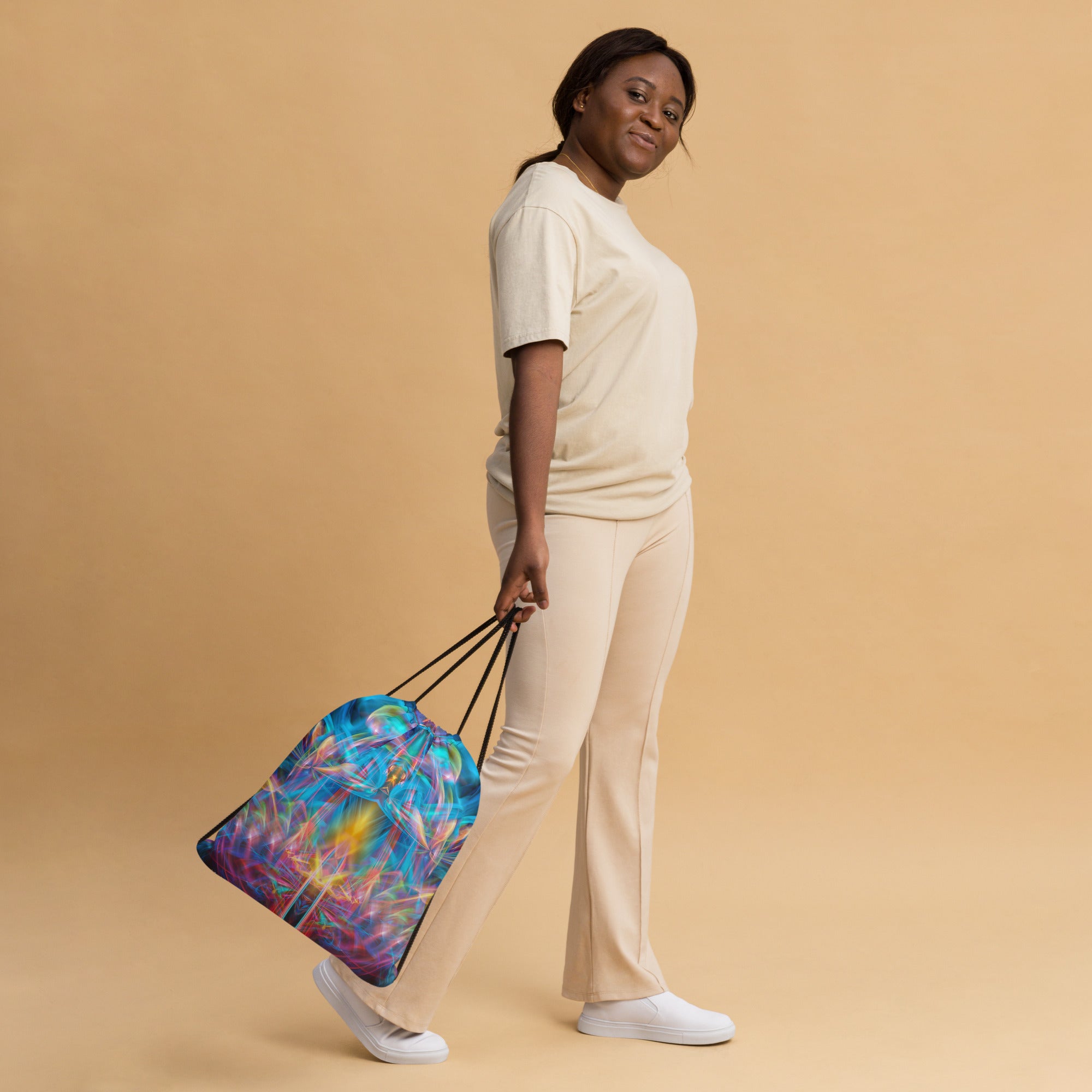 Gym bag, drawstring bag, or backpack? Call it as you like! It's a must-have essential that can be worn as a backpack with drawstring closure at the top, and narrow, contrasting shoulder straps. Combine your love for vibrant prints and a sporty style!
